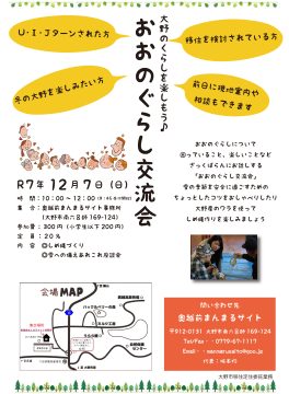 大野の暮らしについて、困っていることや楽しいことなどざっくばらんにお話する「おおのぐらし交流会」