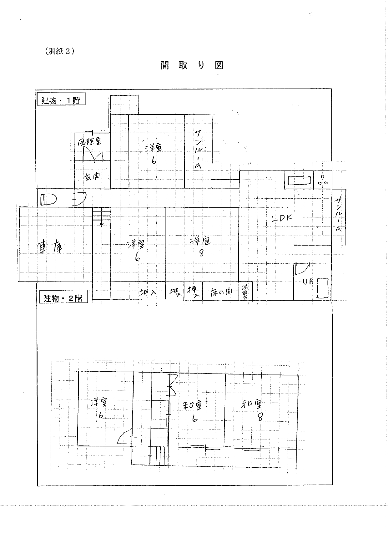 | 間取り | 1階 居間6畳、台所、風呂、トイレ、洋室6畳、洋室8畳 2階 和室8畳、和室6畳、洋室6畳 |